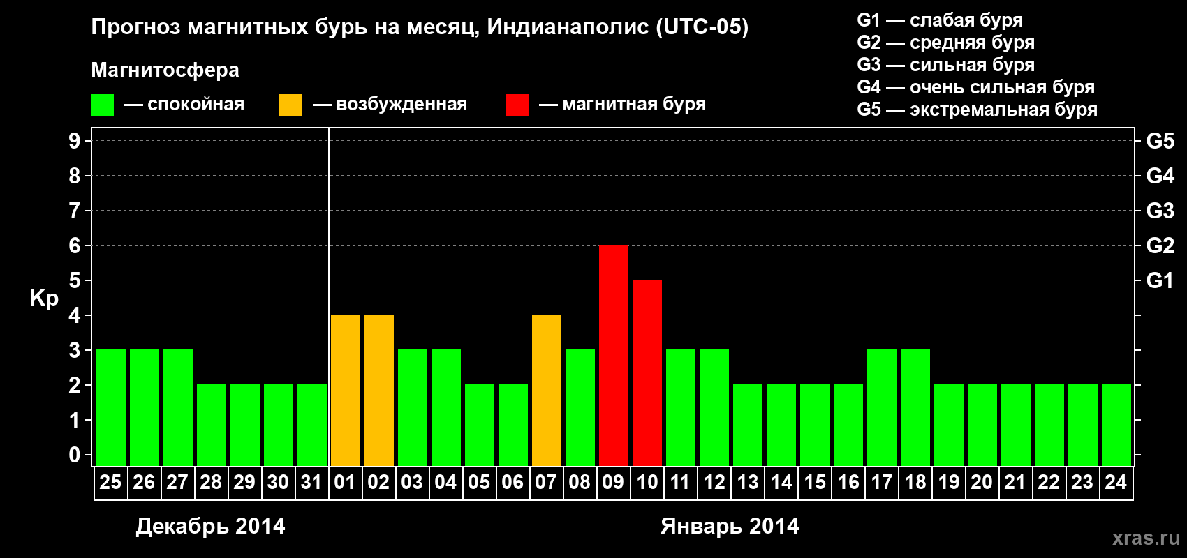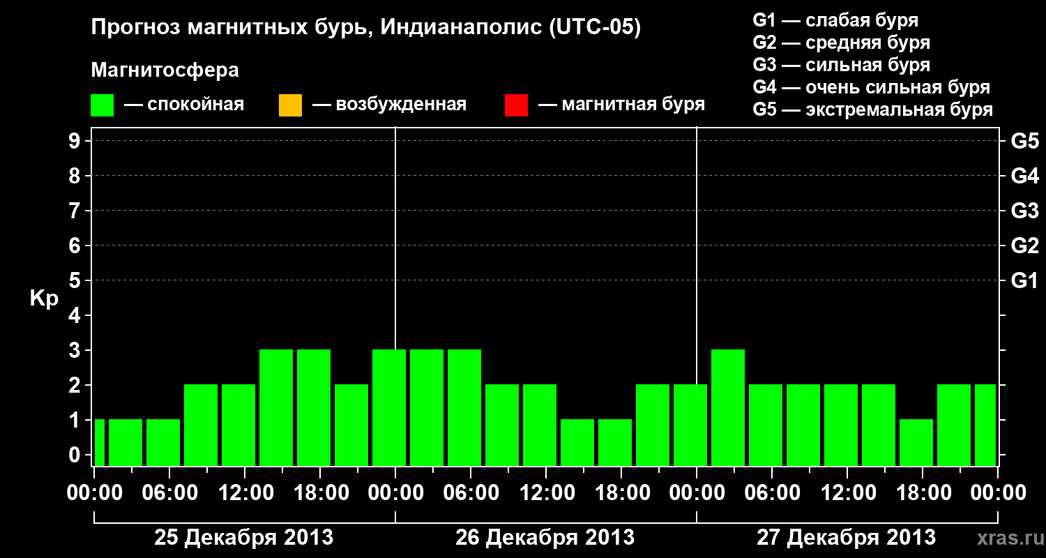 Прогноз магнитных бурь в Индианаполисе на 25 декабря 2013 года