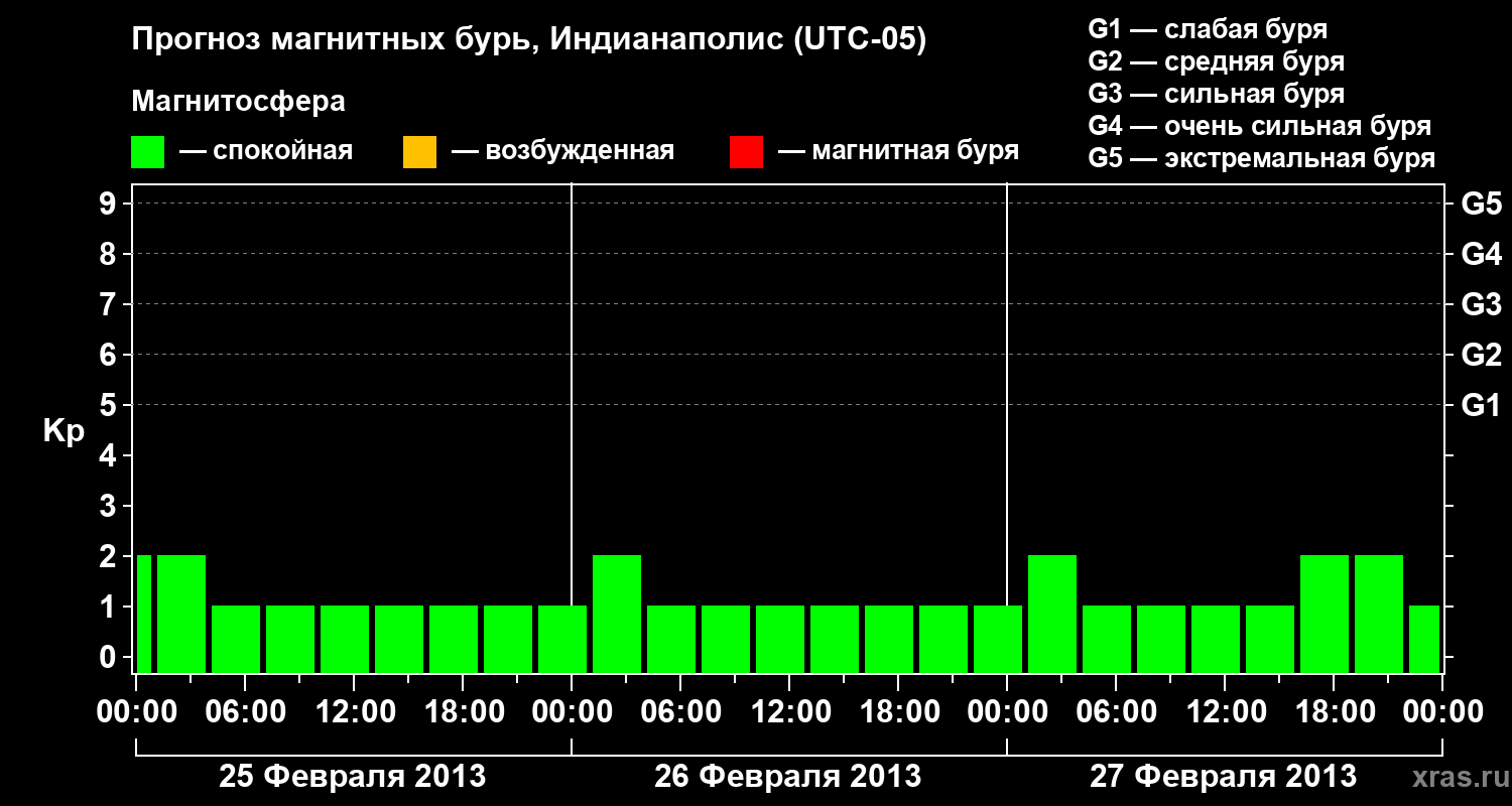Прогноз магнитных бурь в Индианаполисе — 25 февраля 2013 года