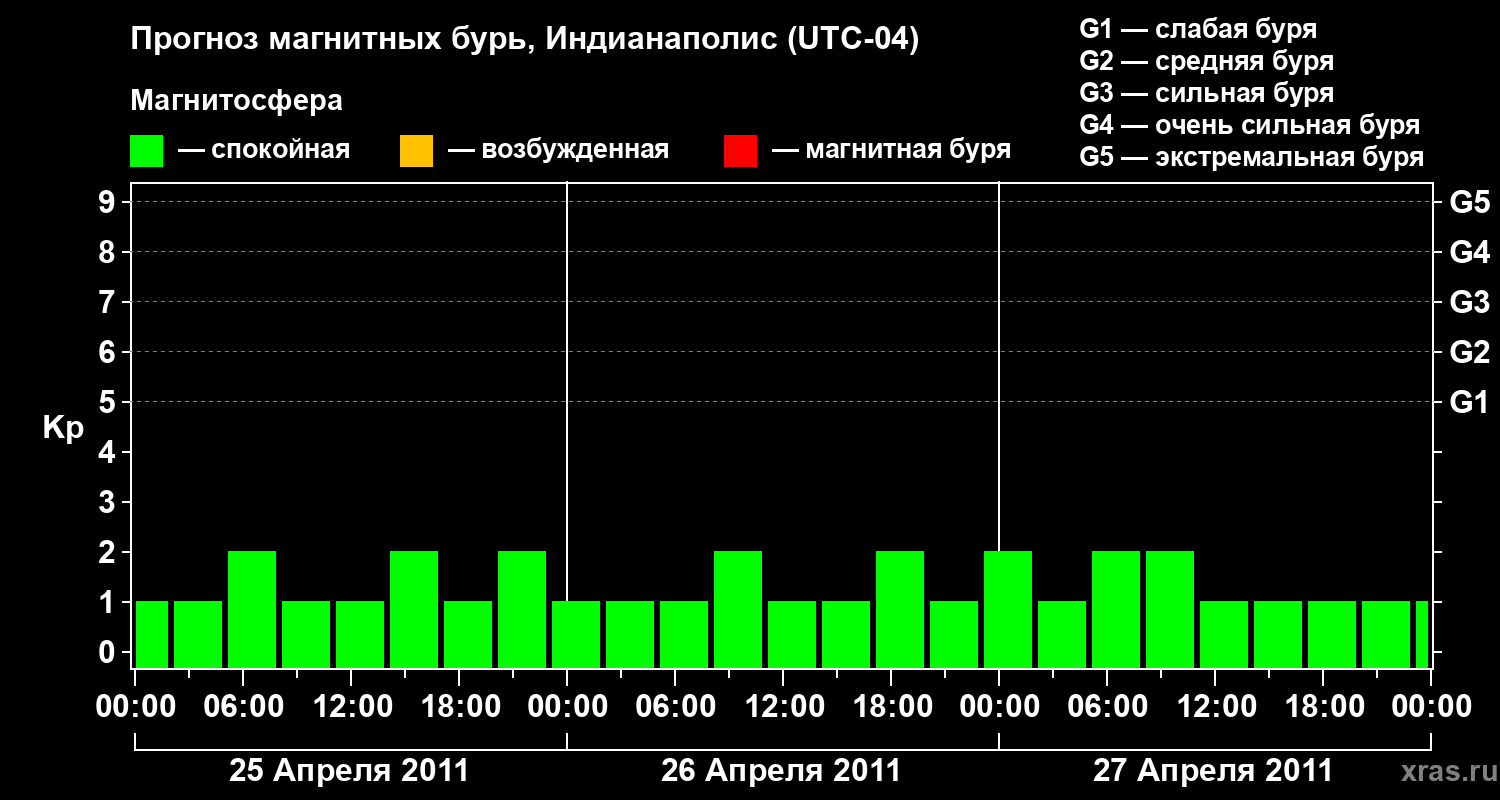 Прогноз магнитных бурь в Индианаполисе на 25 апреля 2011 года