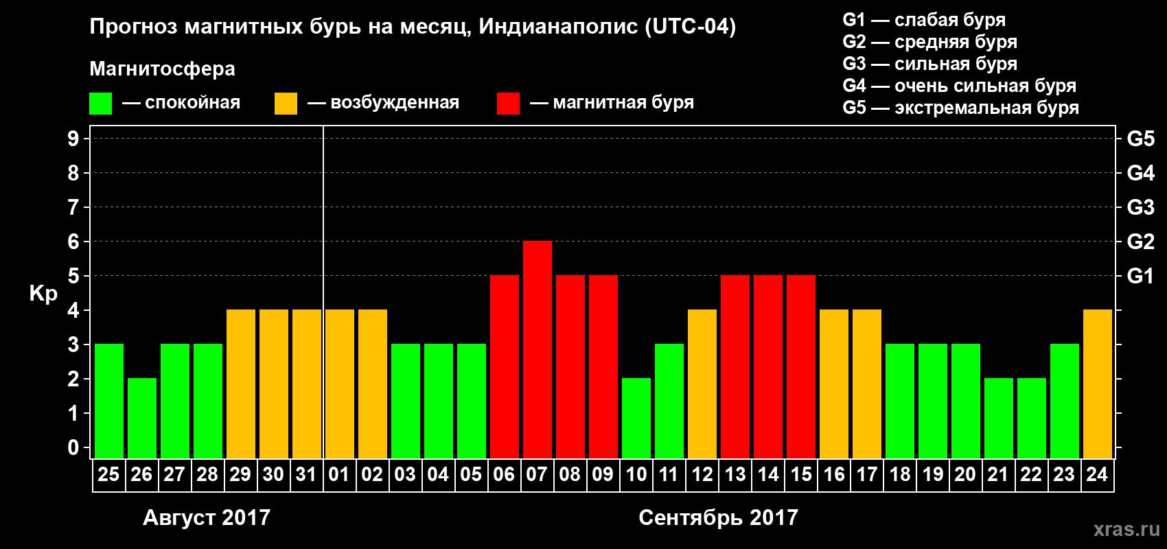 Прогноз магнитных бурь в Индианаполисе — 25 августа 2017 года