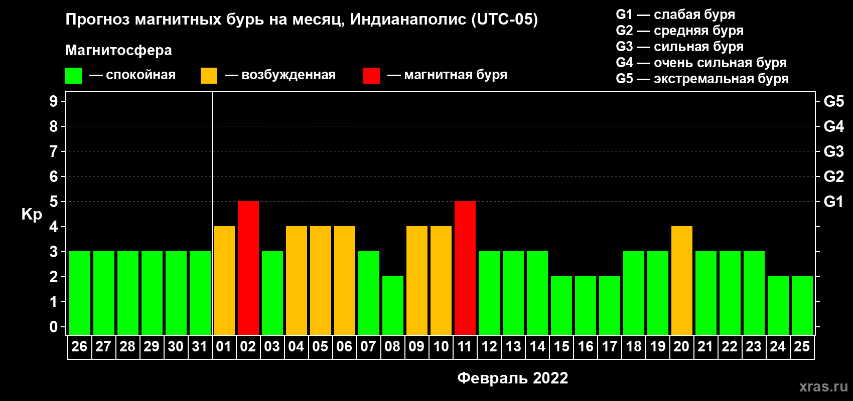 Прогноз магнитных бурь в Индианаполисе на 26 января 2022 года
