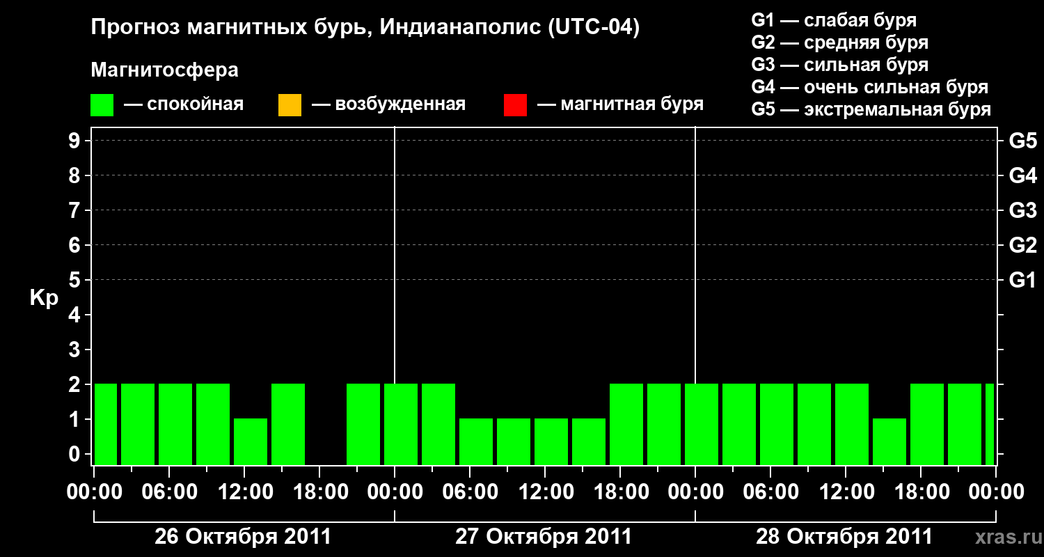 Прогноз магнитных бурь в Индианаполисе на 26 октября 2011 года