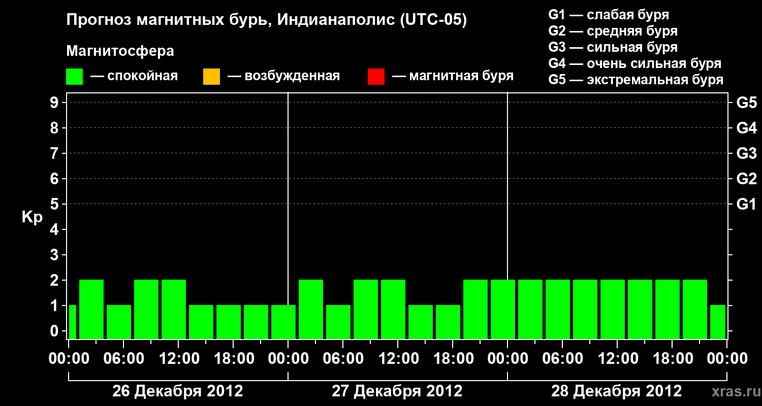 Прогноз магнитных бурь в Индианаполисе — 26 декабря 2012 года