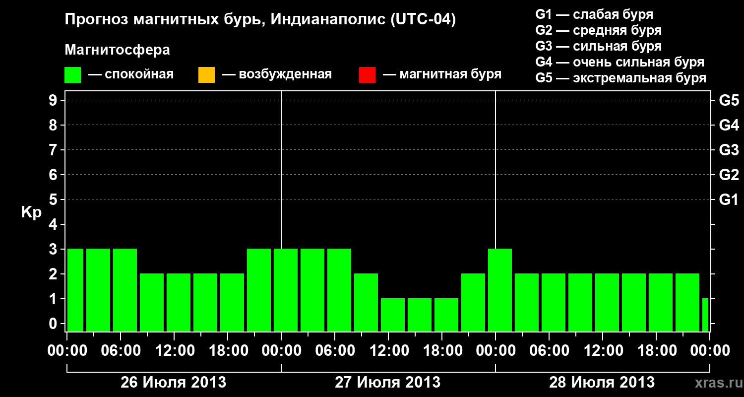 Прогноз магнитных бурь в Индианаполисе на 26 июля 2013 года
