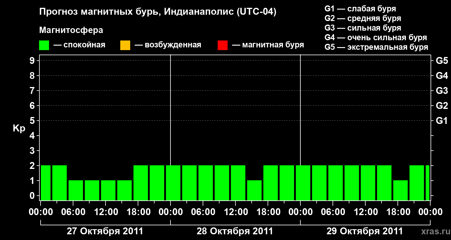 Прогноз магнитных бурь в Индианаполисе на 27 октября 2011 года