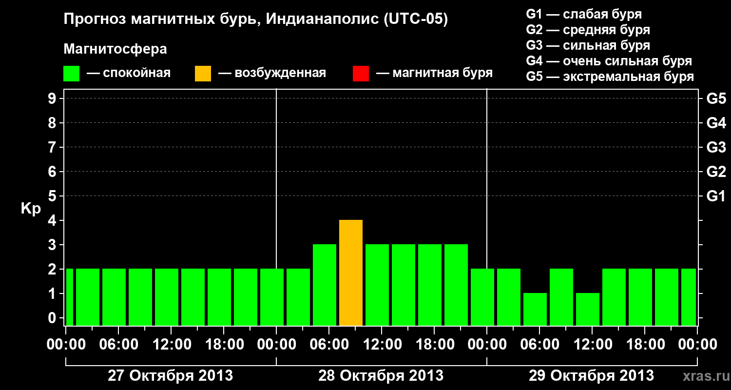Прогноз магнитных бурь в Индианаполисе на 27 октября 2013 года