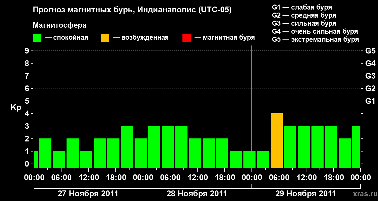 Прогноз магнитных бурь в Индианаполисе — 27 ноября 2011 года