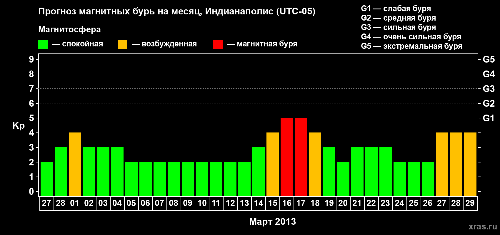 Прогноз магнитных бурь в Индианаполисе на 27 февраля 2013 года