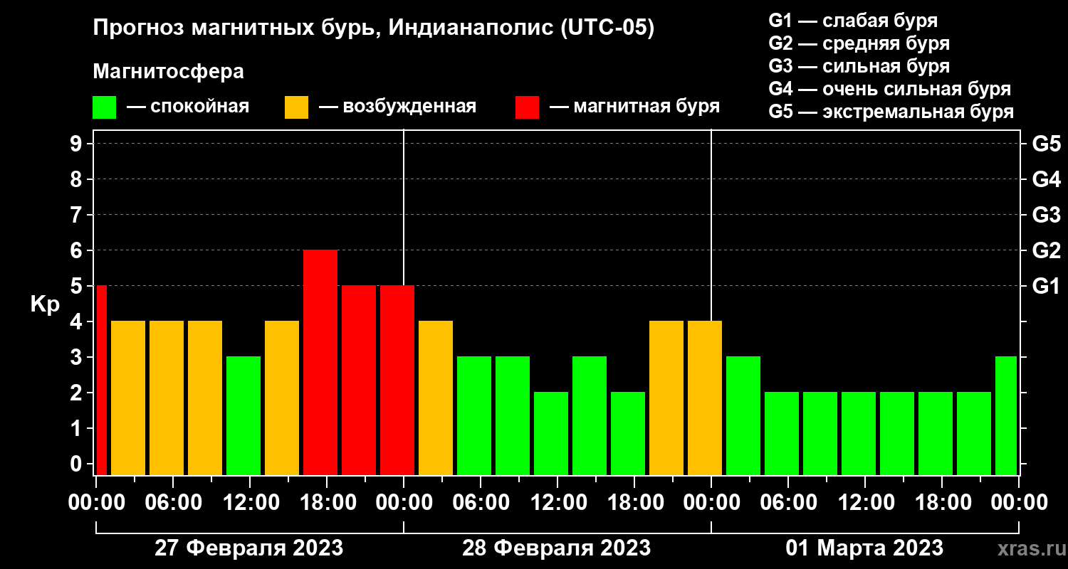 Прогноз магнитных бурь в Индианаполисе — 27 февраля 2023 года