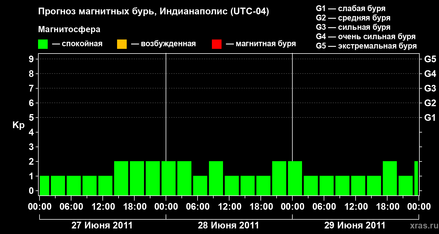 Прогноз магнитных бурь в Индианаполисе — 27 июня 2011 года