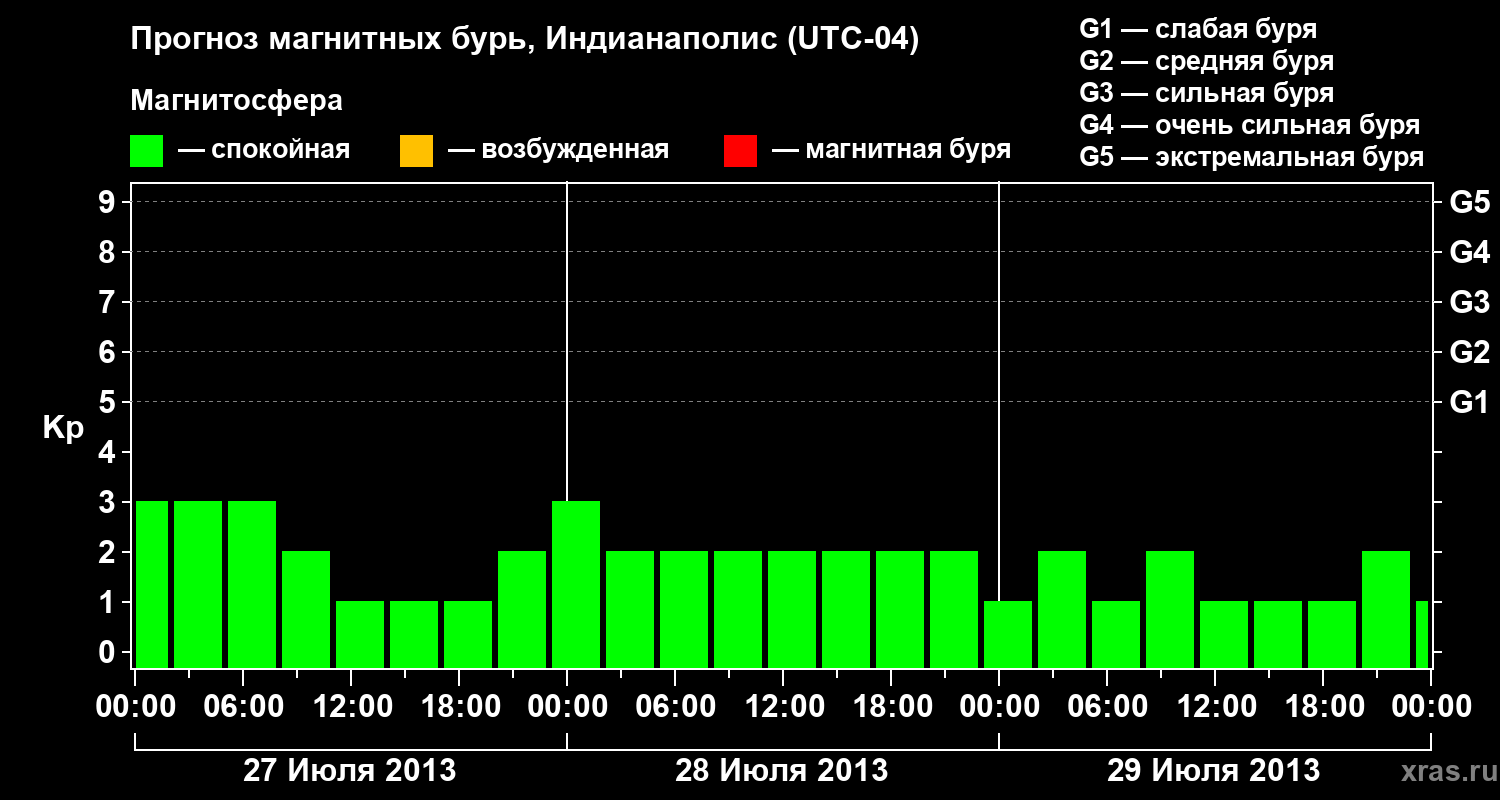 Прогноз магнитных бурь в Индианаполисе на 27 июля 2013 года