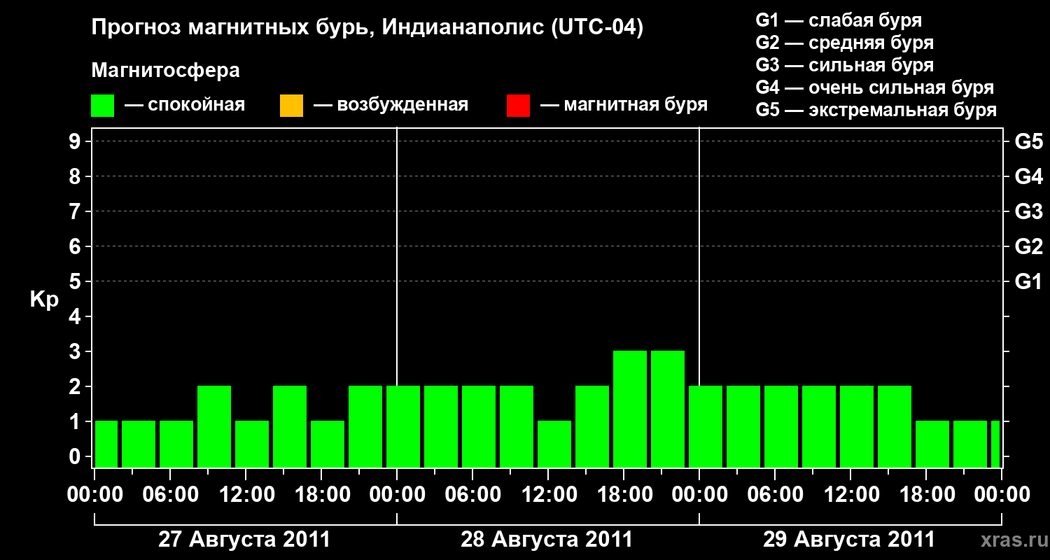 Прогноз магнитных бурь в Индианаполисе на 27 августа 2011 года
