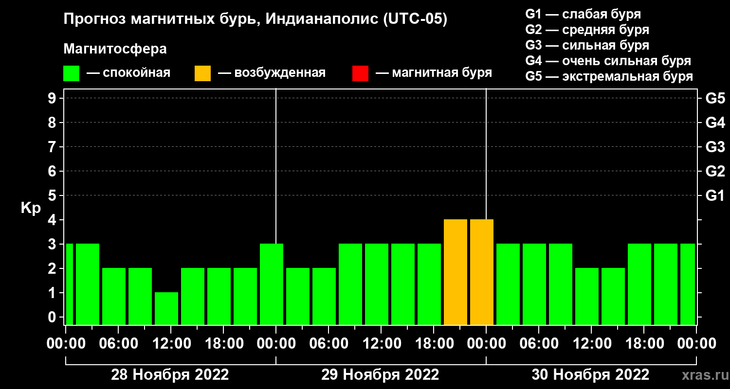 Прогноз магнитных бурь в Индианаполисе — 28 ноября 2022 года