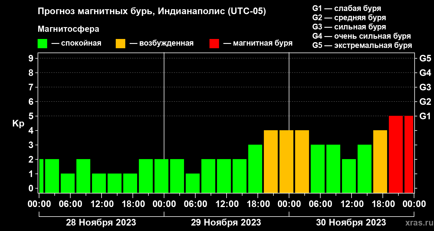 Прогноз магнитных бурь в Индианаполисе — 28 ноября 2023 года