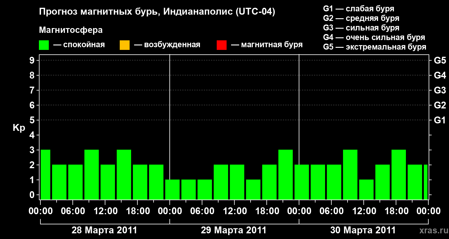 Прогноз магнитных бурь в Индианаполисе — 28 марта 2011 года