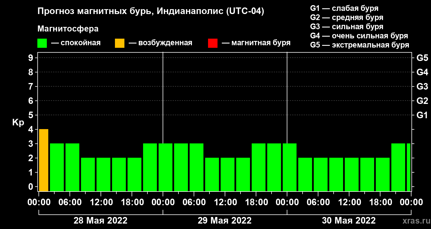 Прогноз магнитных бурь в Индианаполисе — 28 мая 2022 года