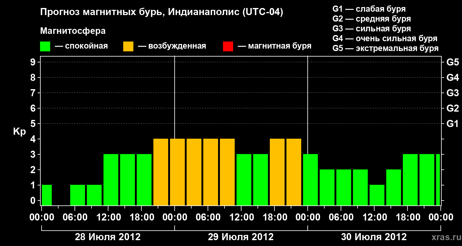 Прогноз магнитных бурь в Индианаполисе на 28 июля 2012 года