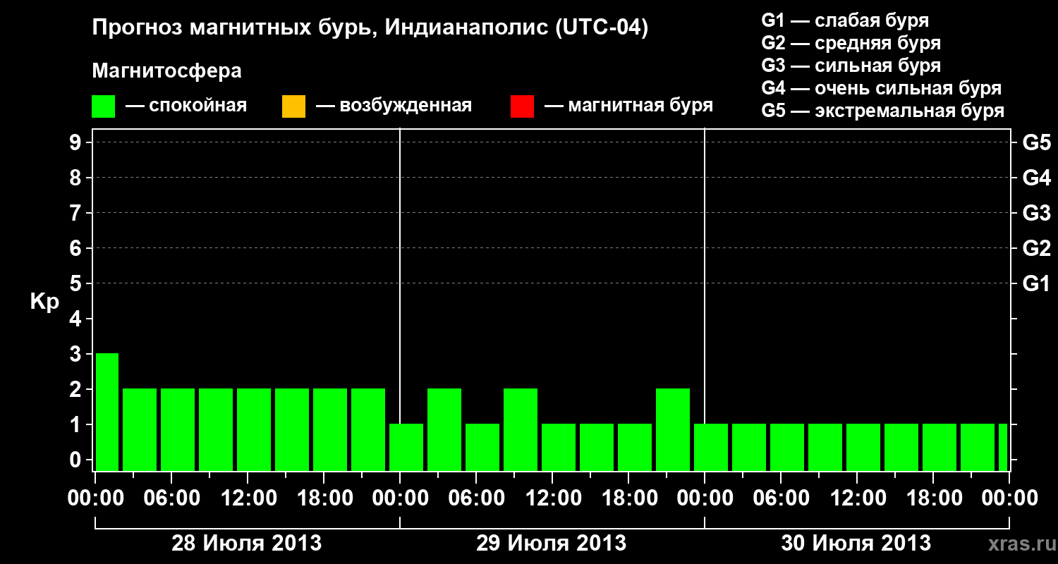 Прогноз магнитных бурь в Индианаполисе на 28 июля 2013 года
