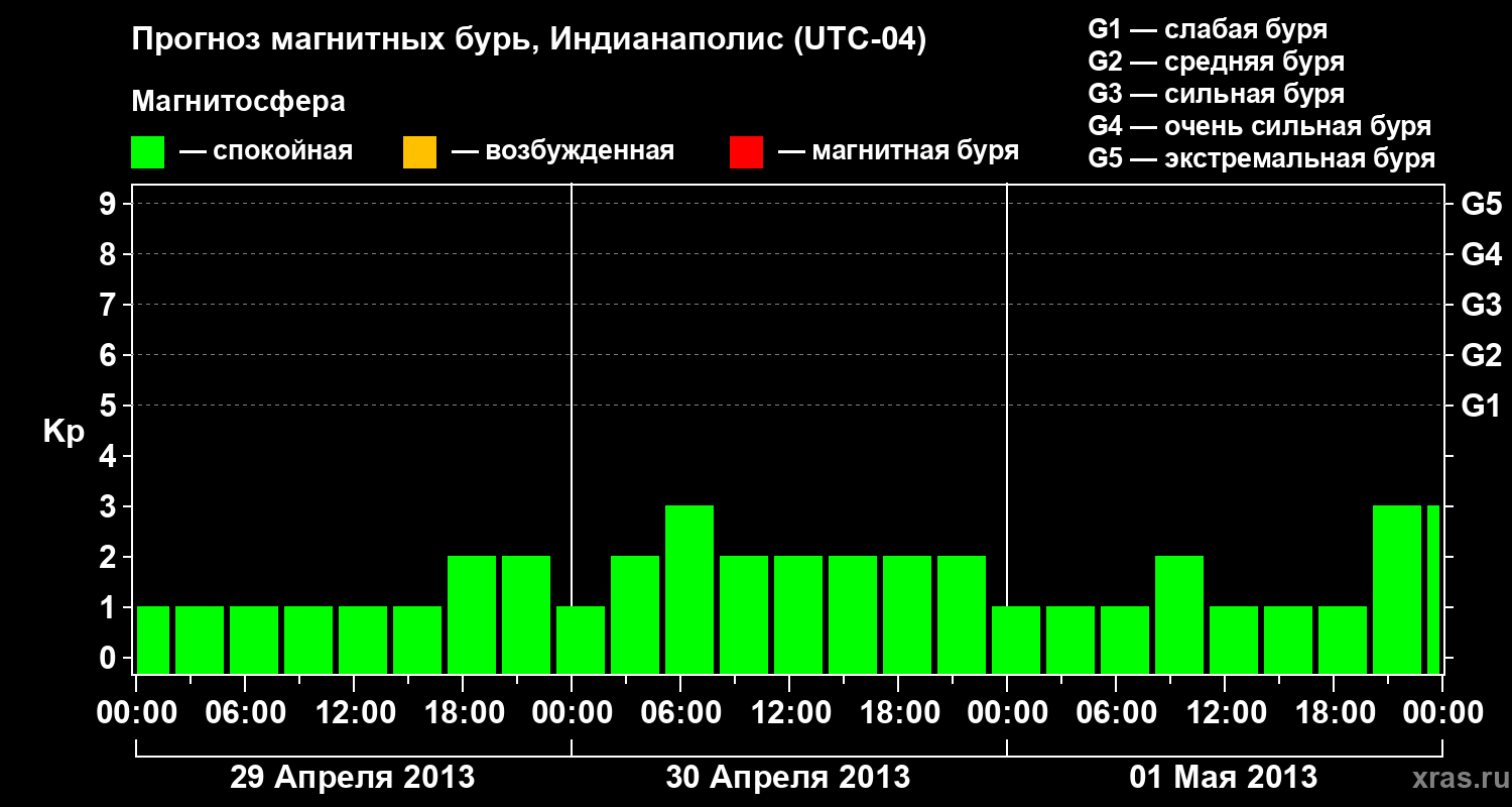 Прогноз магнитных бурь в Индианаполисе на 29 апреля 2013 года