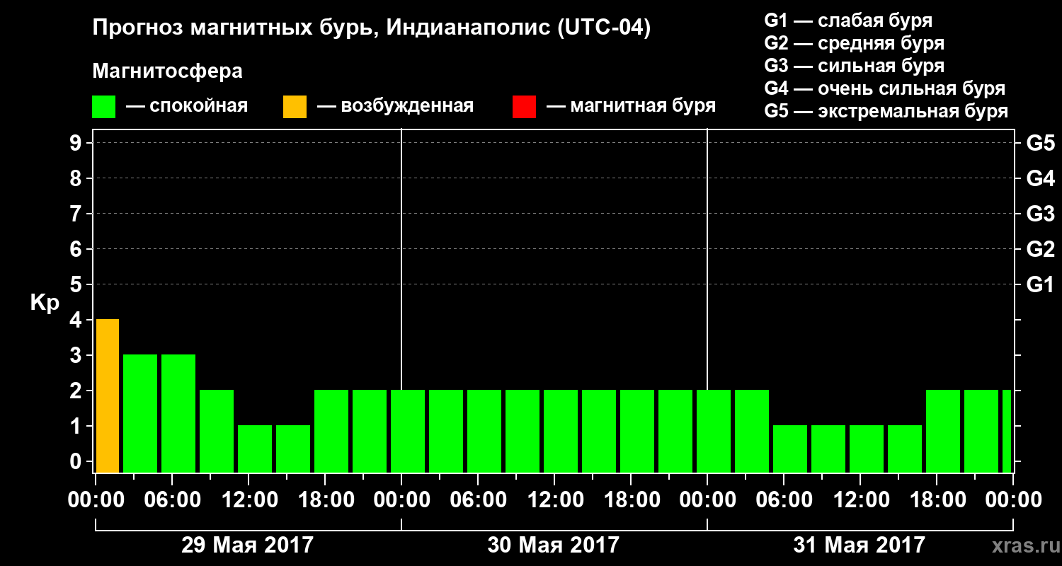 Прогноз магнитных бурь в Индианаполисе — 29 мая 2017 года