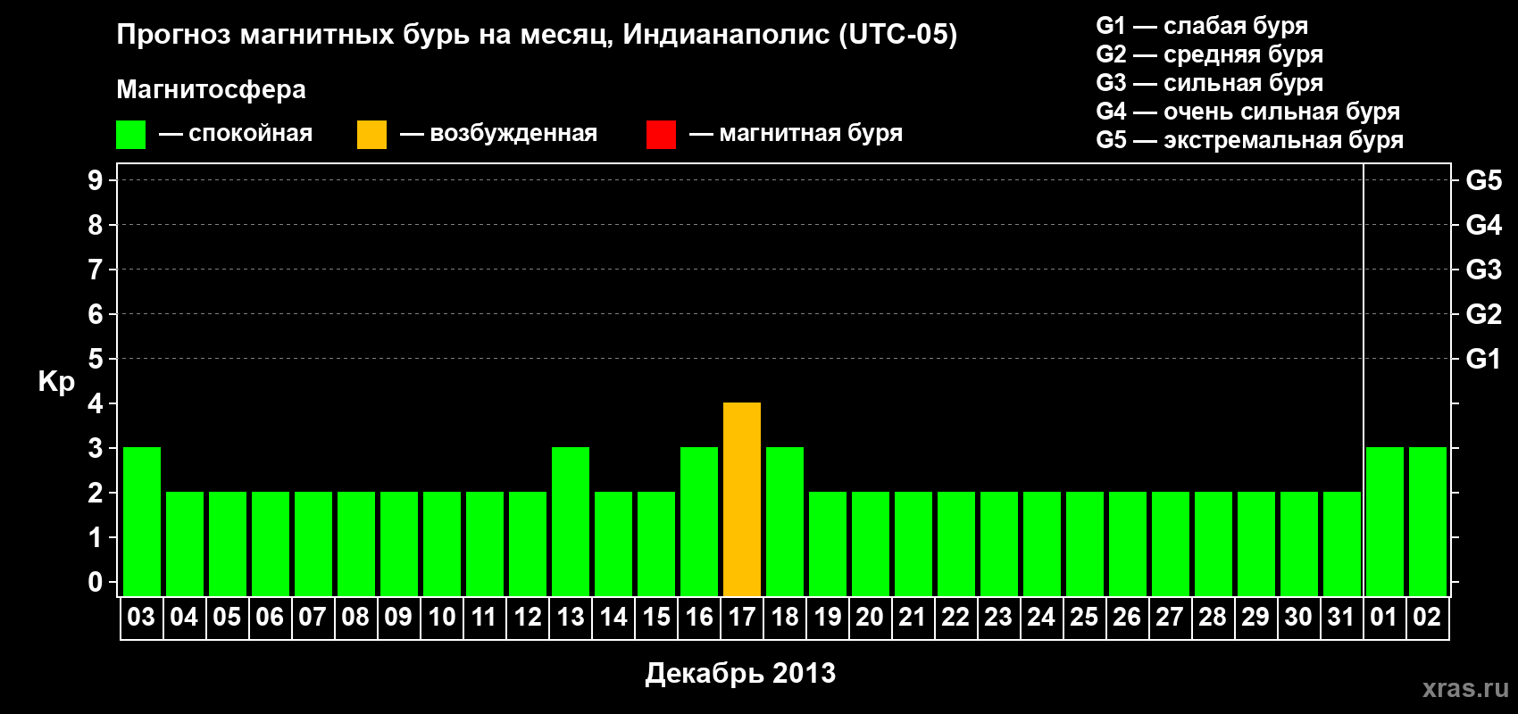 Прогноз магнитных бурь в Индианаполисе на 3 декабря 2012 года
