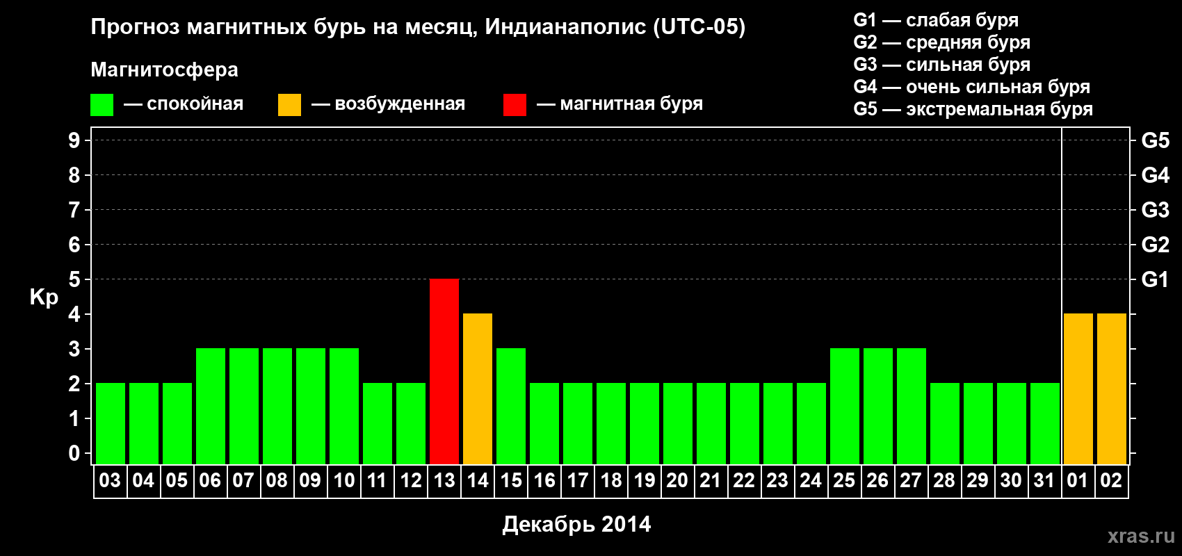 Прогноз магнитных бурь в Индианаполисе на 3 декабря 2013 года