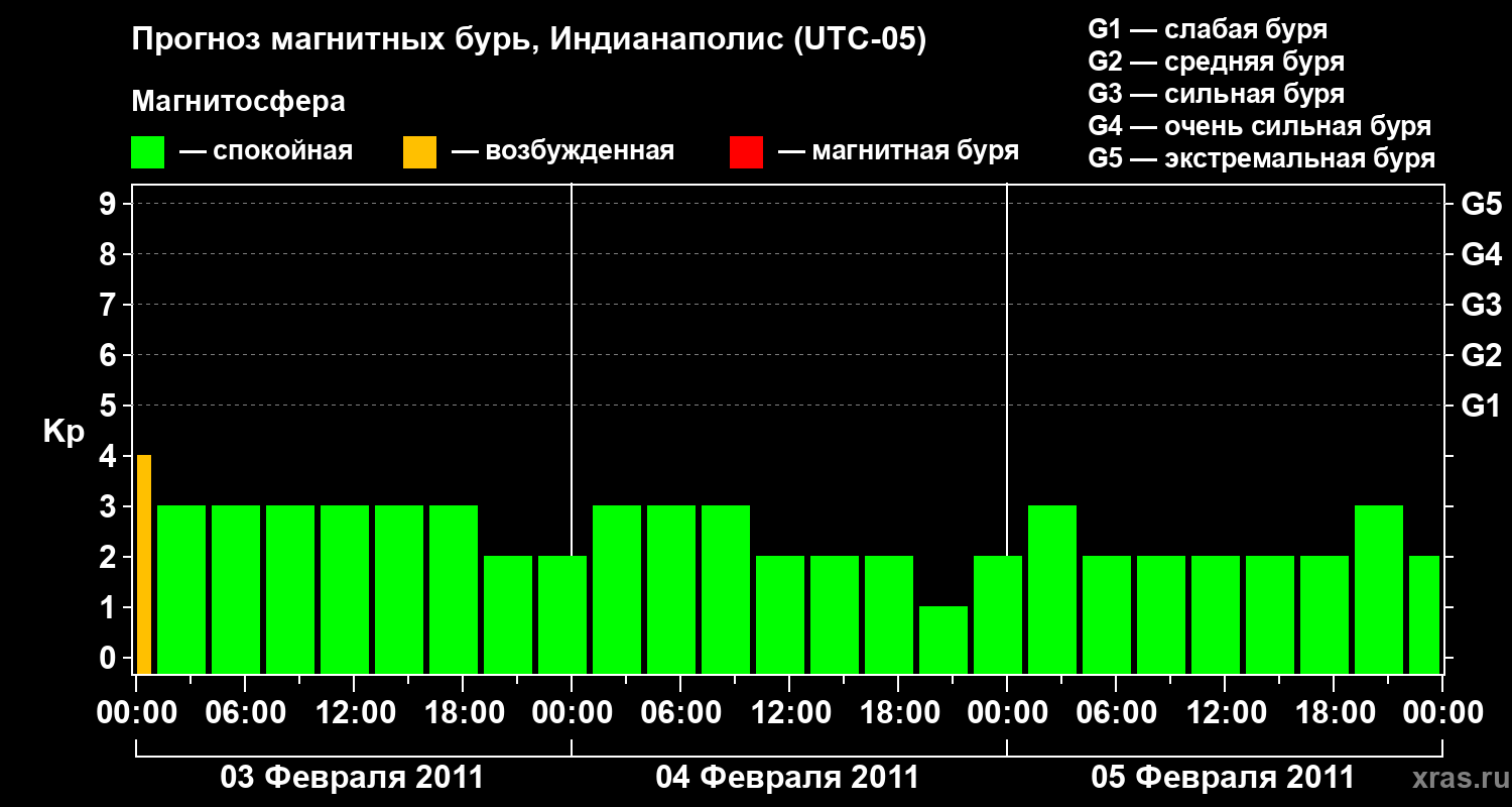 Прогноз магнитных бурь в Индианаполисе — 3 февраля 2011 года