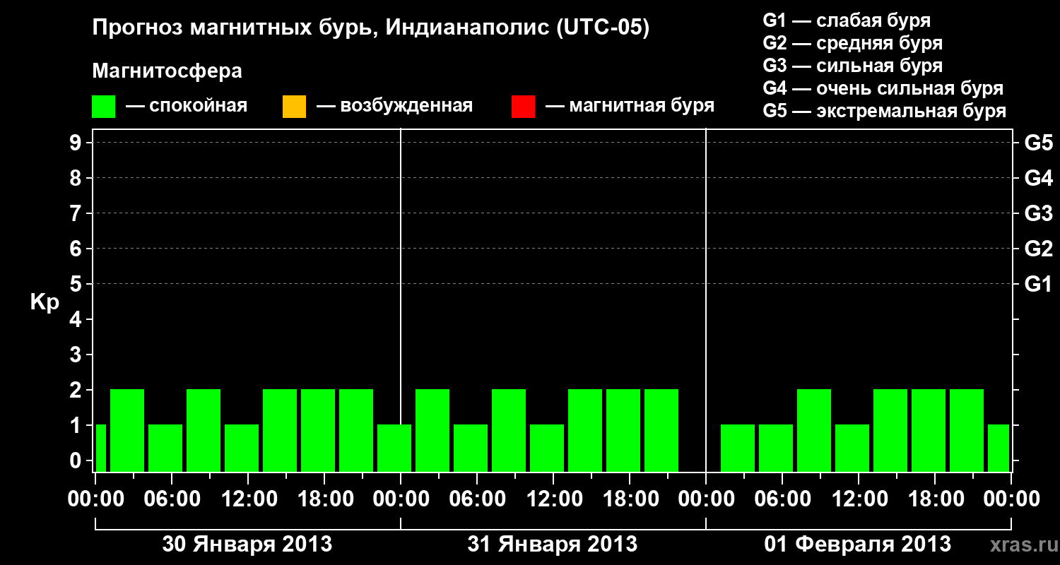Прогноз магнитных бурь в Индианаполисе — 30 января 2013 года