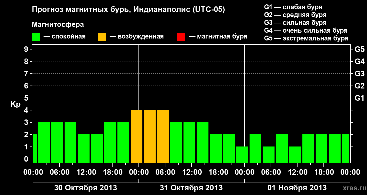 Прогноз магнитных бурь в Индианаполисе на 30 октября 2013 года