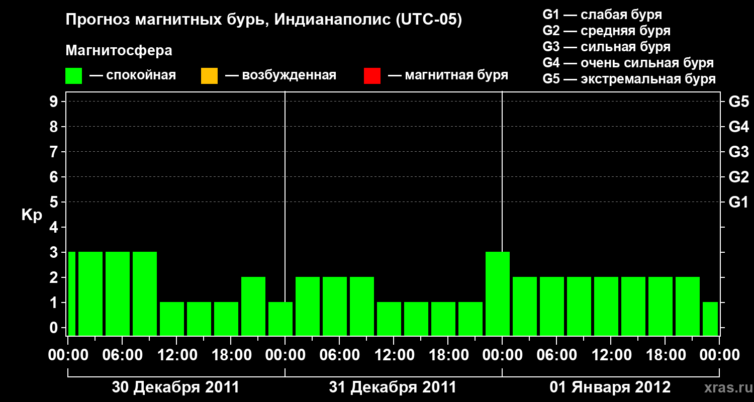 Прогноз магнитных бурь в Индианаполисе — 30 декабря 2011 года
