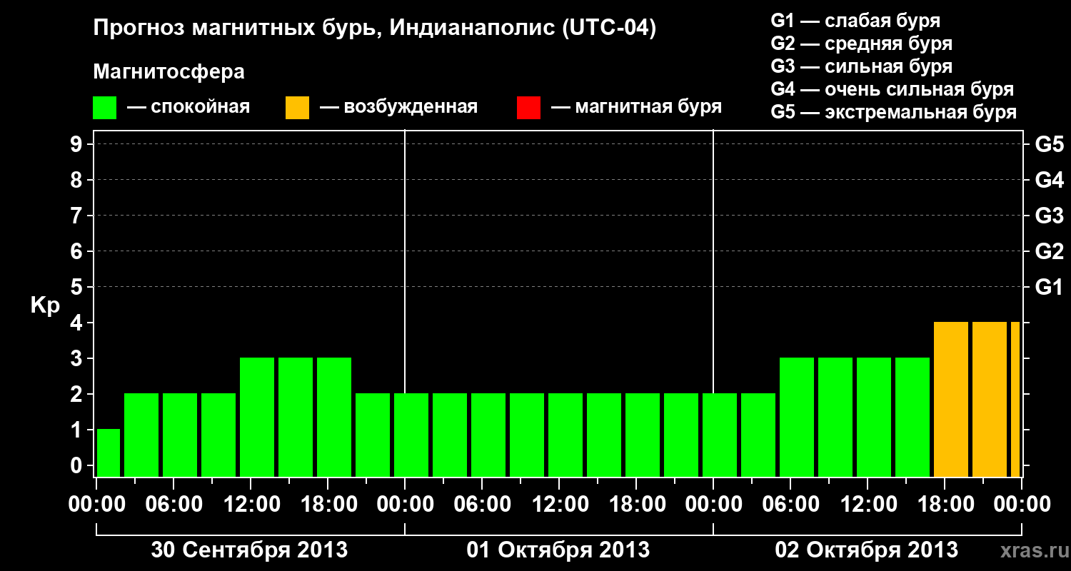Прогноз магнитных бурь в Индианаполисе — 30 сентября 2013 года