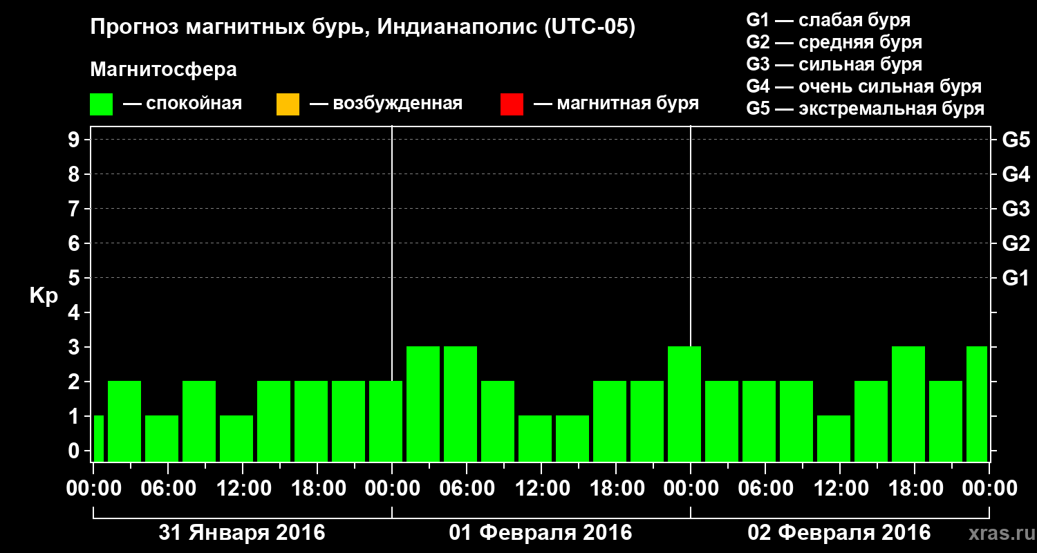 Прогноз магнитных бурь в Индианаполисе — 31 января 2016 года