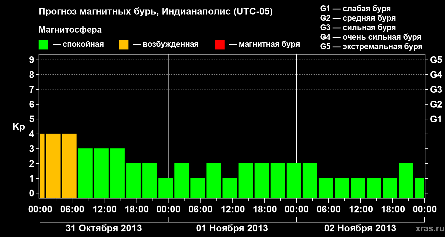 Прогноз магнитных бурь в Индианаполисе на 31 октября 2013 года