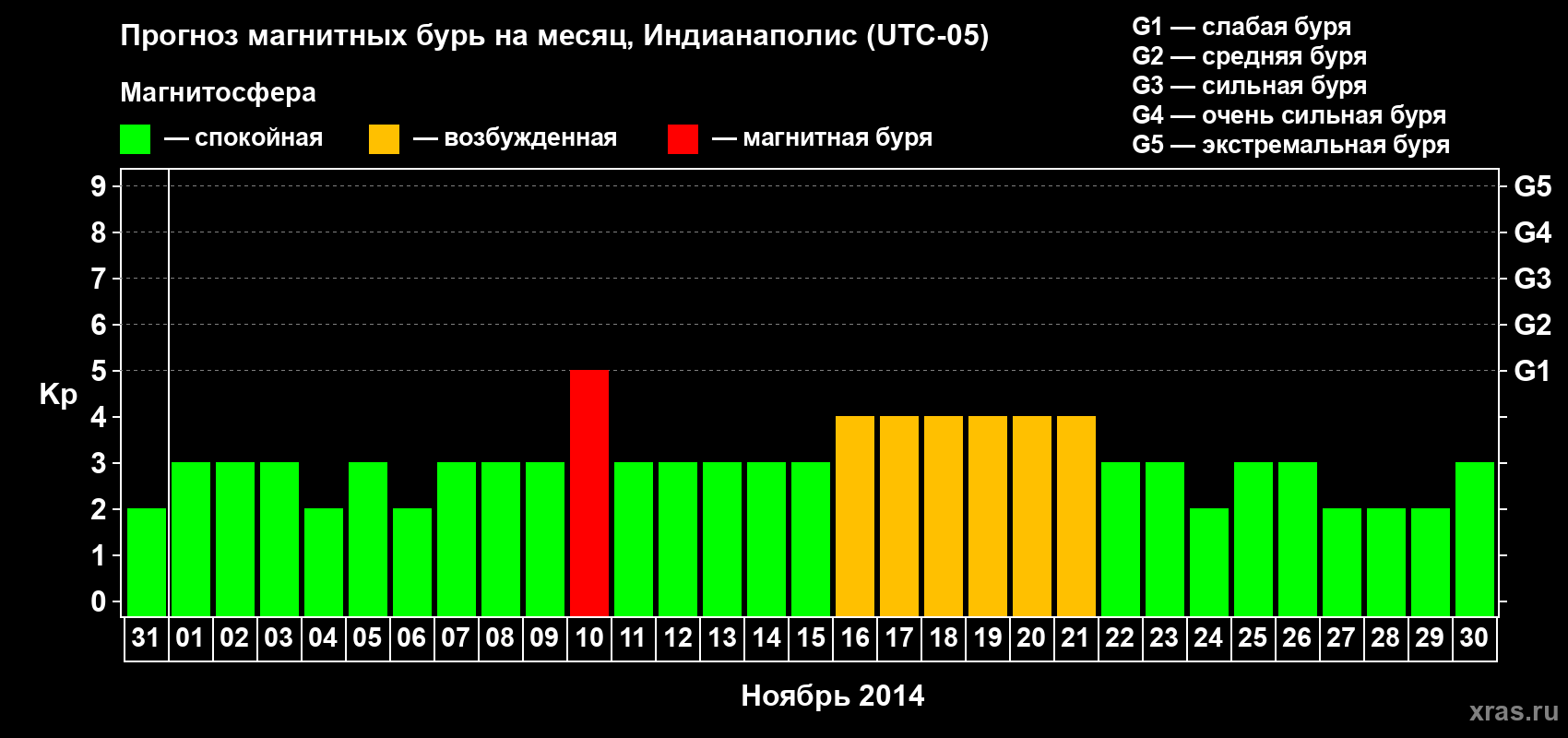 Прогноз магнитных бурь в Индианаполисе на 31 октября 2014 года