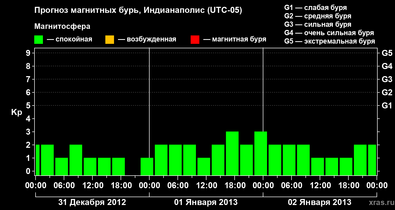 Прогноз магнитных бурь в Индианаполисе на 31 декабря 2012 года