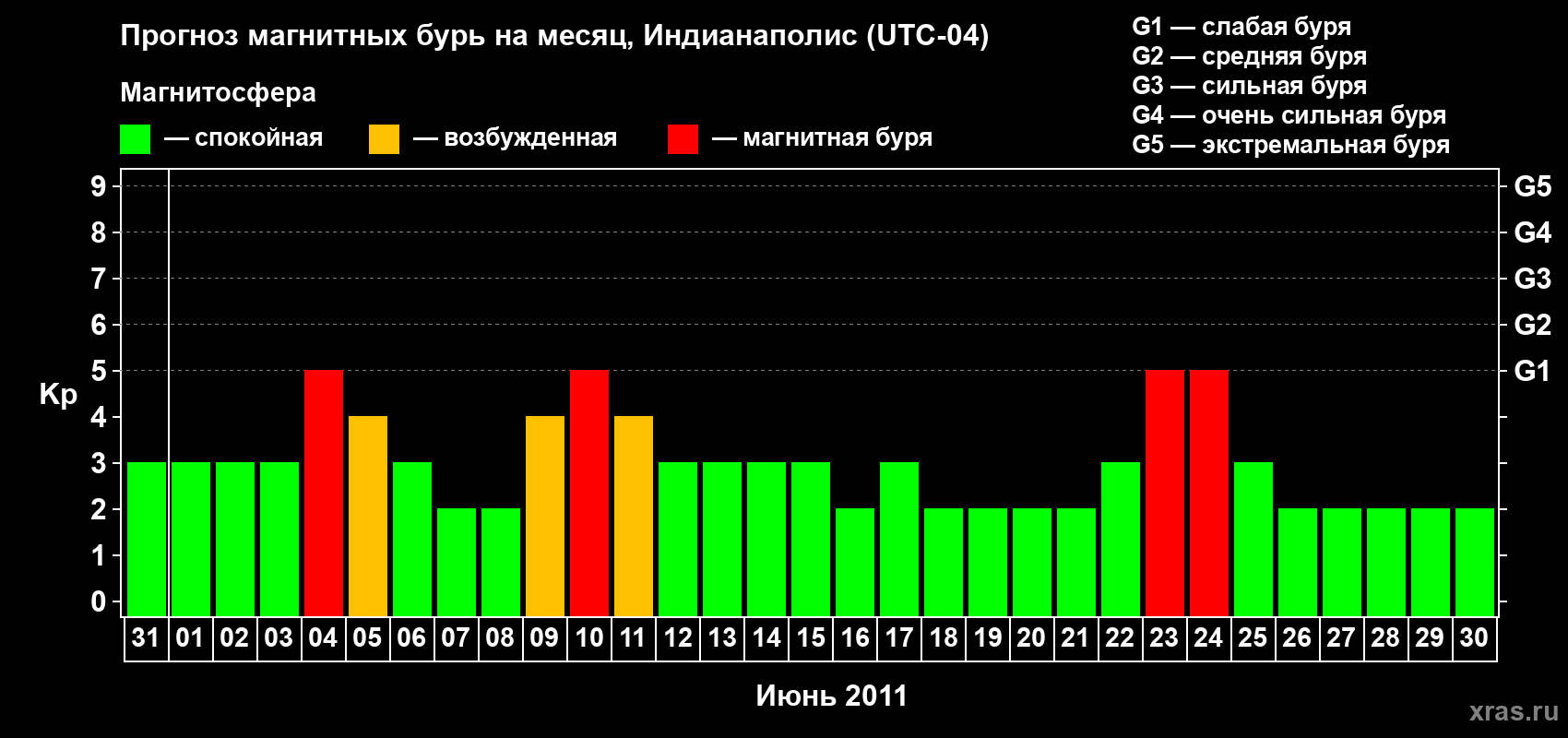 Прогноз магнитных бурь в Индианаполисе — 31 мая 2011 года