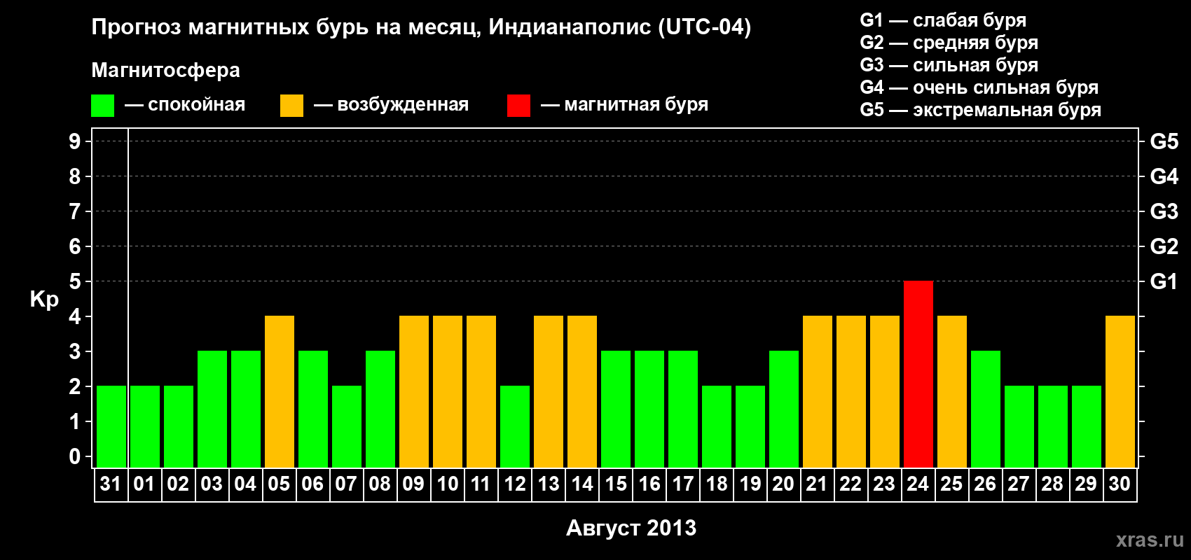 Прогноз магнитных бурь в Индианаполисе — 31 июля 2013 года