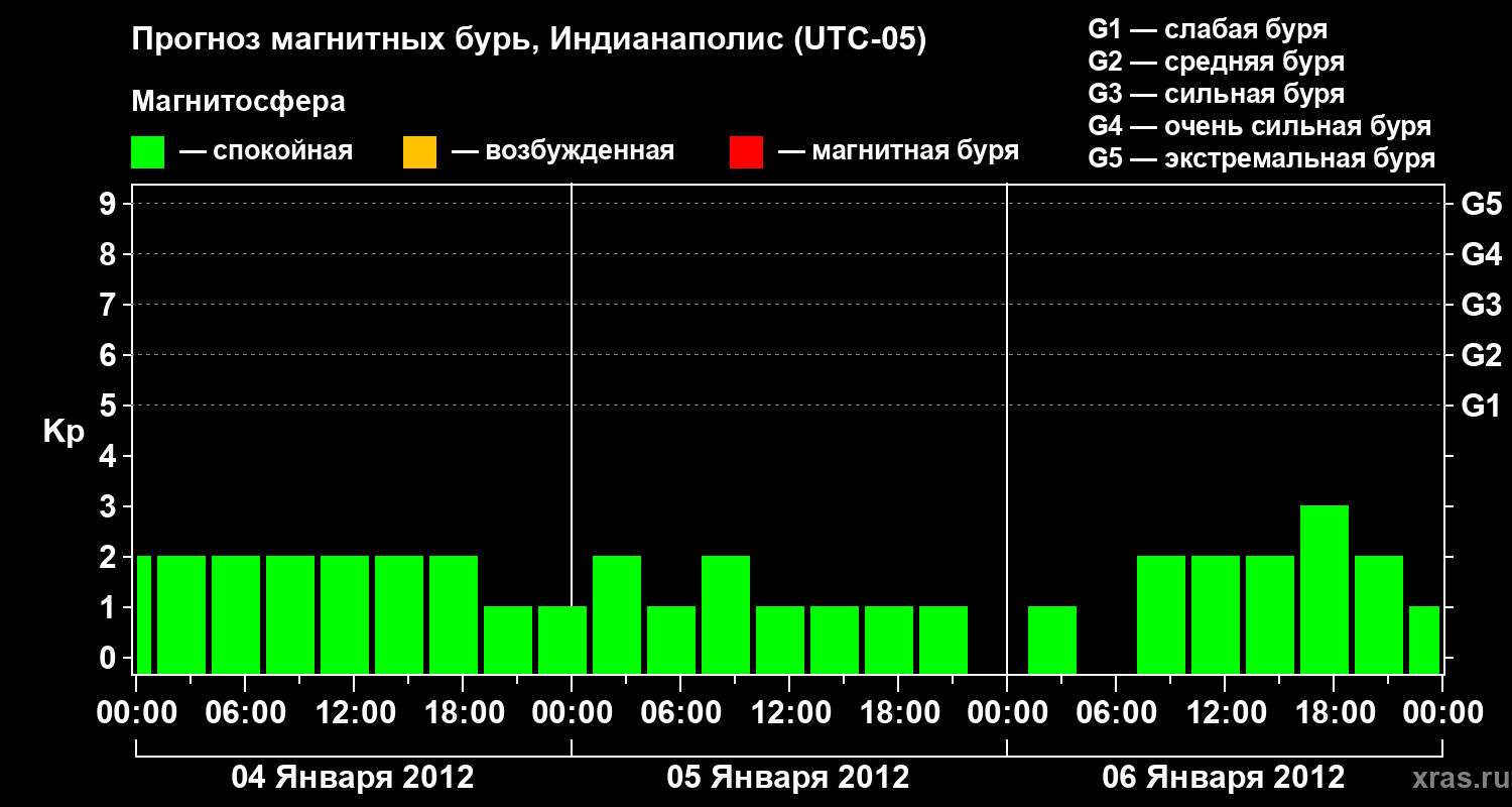 Прогноз магнитных бурь в Индианаполисе на 4 января 2012 года