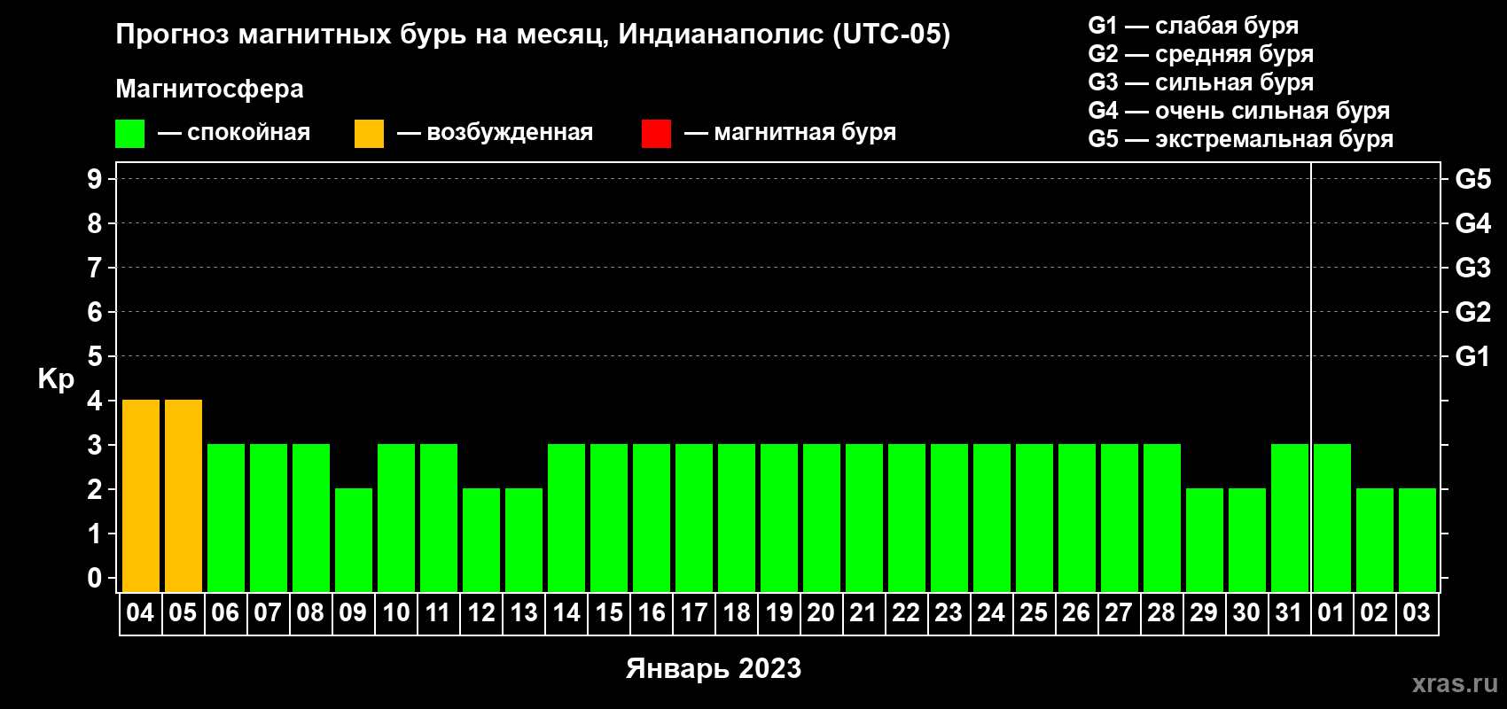 Прогноз магнитных бурь в Индианаполисе — 4 января 2023 года
