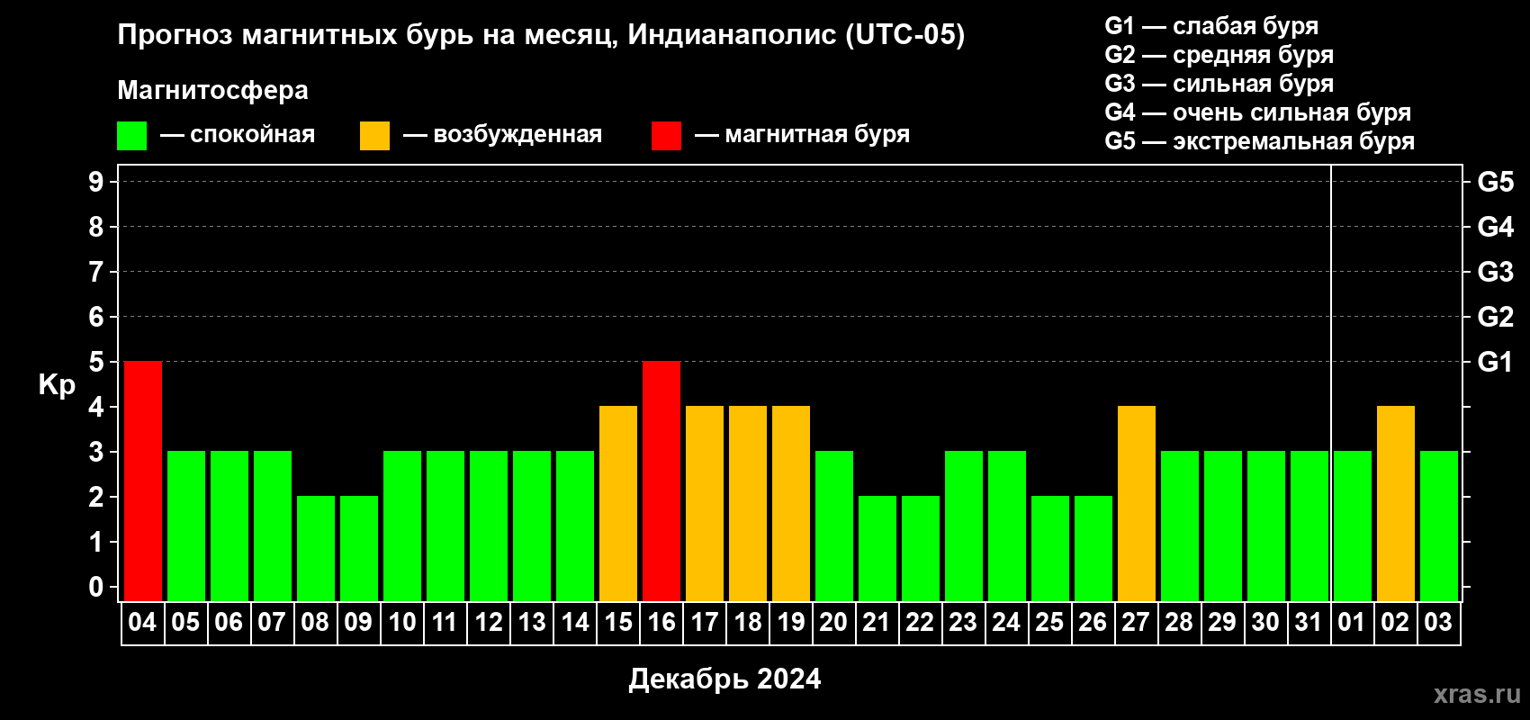 Прогноз магнитных бурь в Индианаполисе — 4 декабря 2023 года