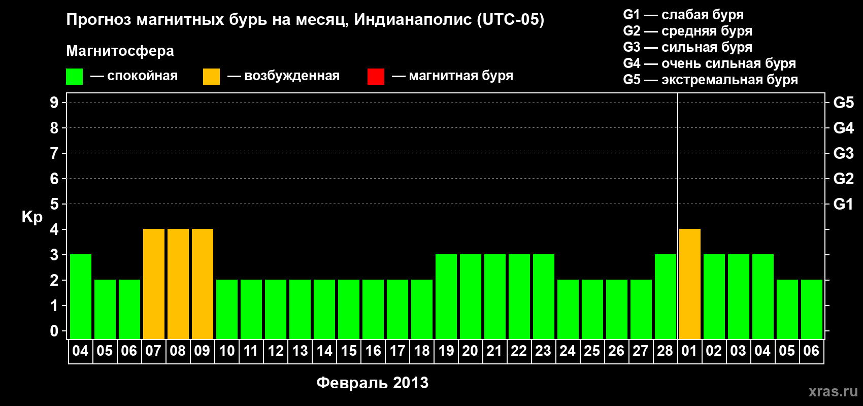 Прогноз магнитных бурь в Индианаполисе — 4 февраля 2013 года