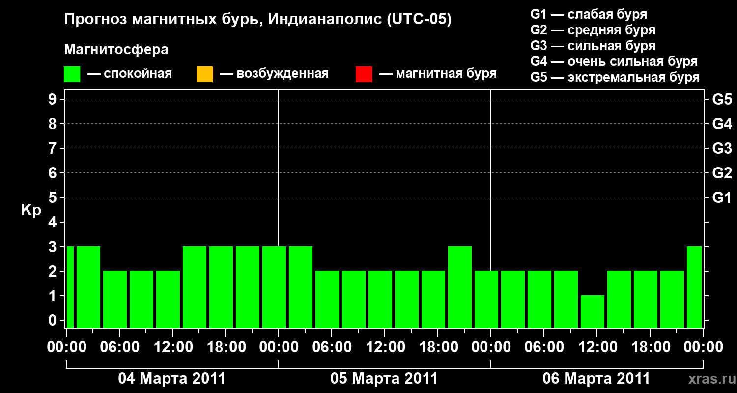 Прогноз магнитных бурь в Индианаполисе — 4 марта 2011 года
