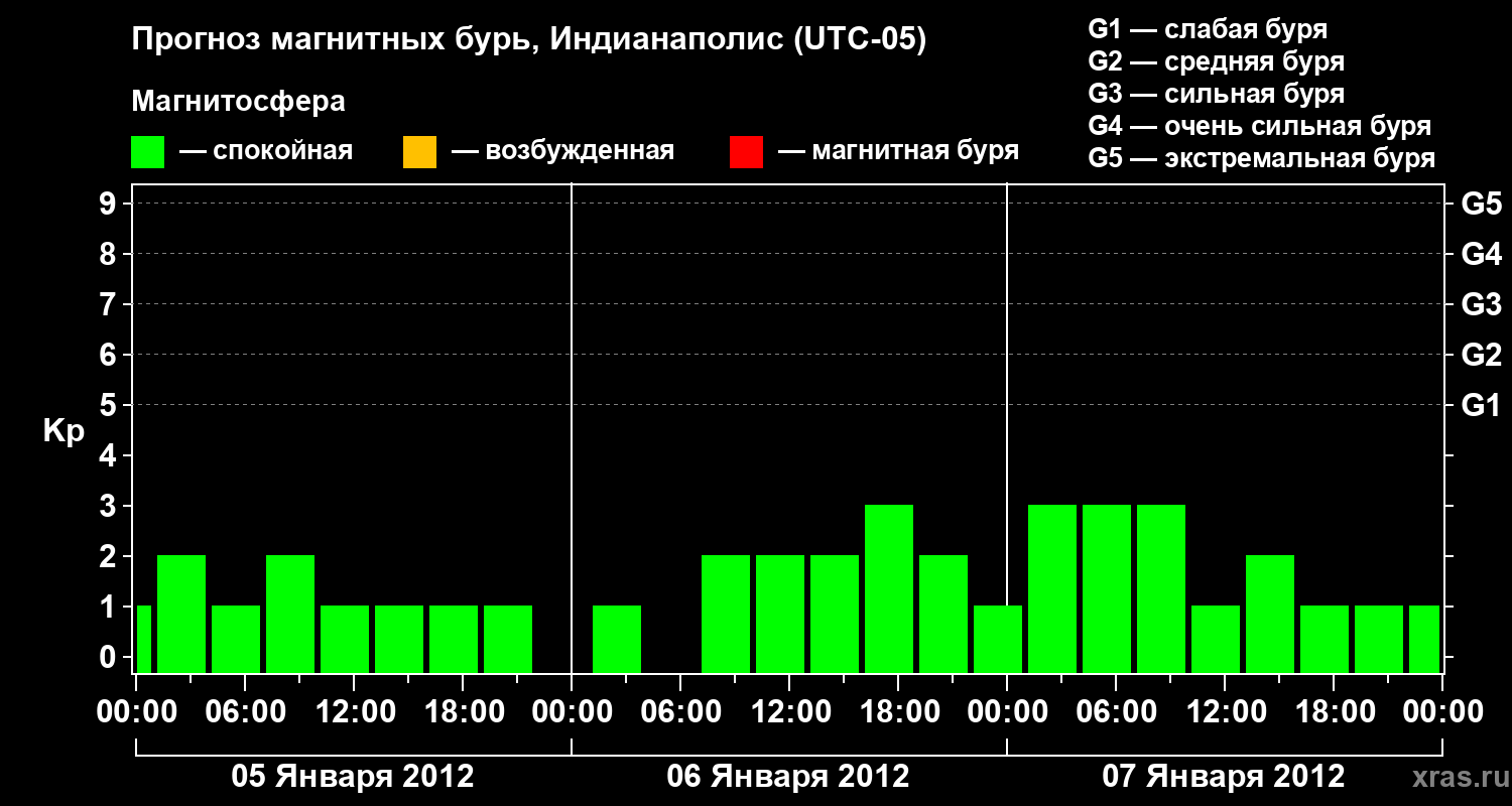 Прогноз магнитных бурь в Индианаполисе — 5 января 2012 года