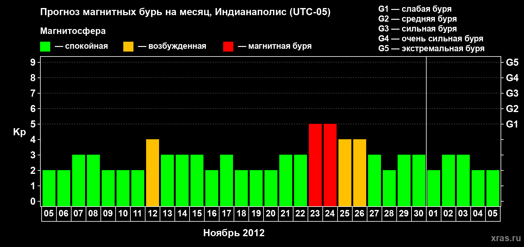 Прогноз магнитных бурь в Индианаполисе — 5 ноября 2012 года