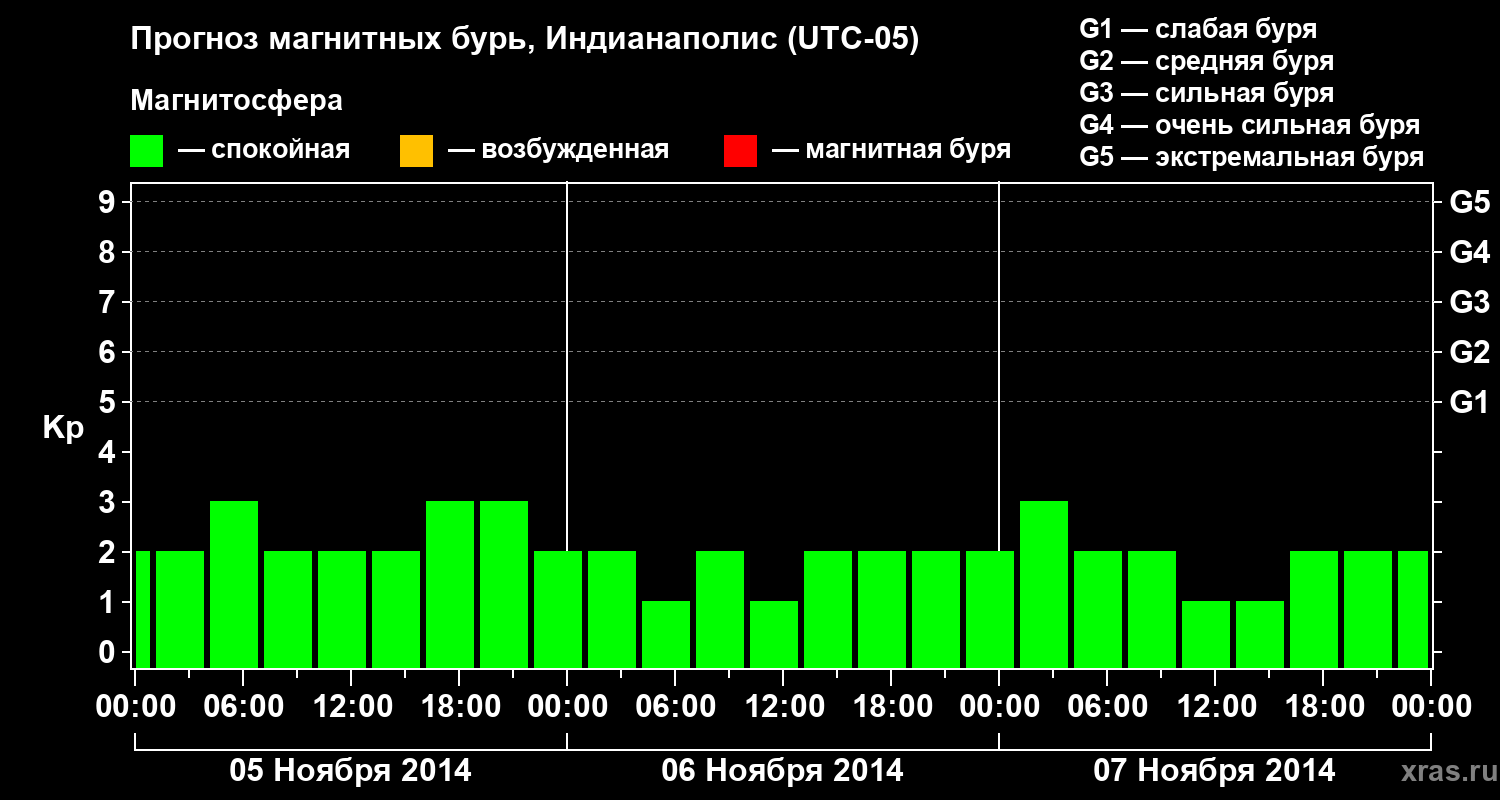 Прогноз магнитных бурь в Индианаполисе — 5 ноября 2014 года
