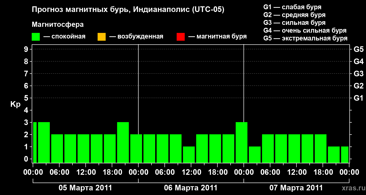 Прогноз магнитных бурь в Индианаполисе на 5 марта 2011 года