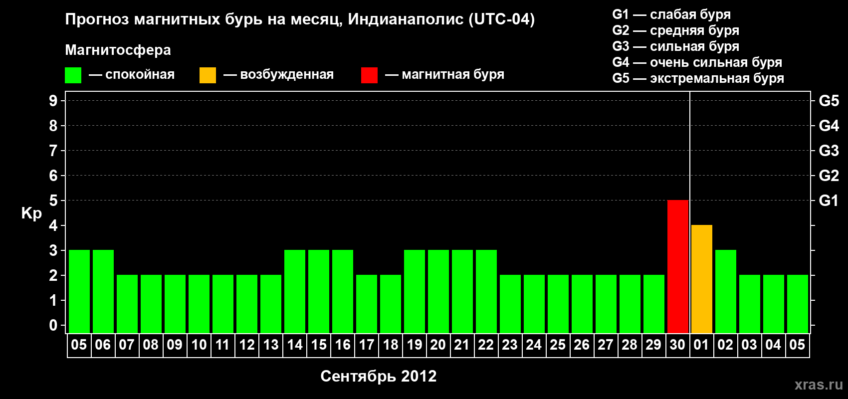 Прогноз магнитных бурь в Индианаполисе — 5 сентября 2012 года