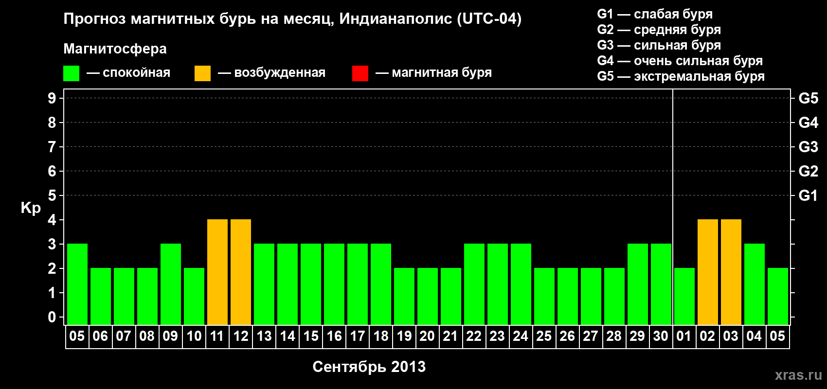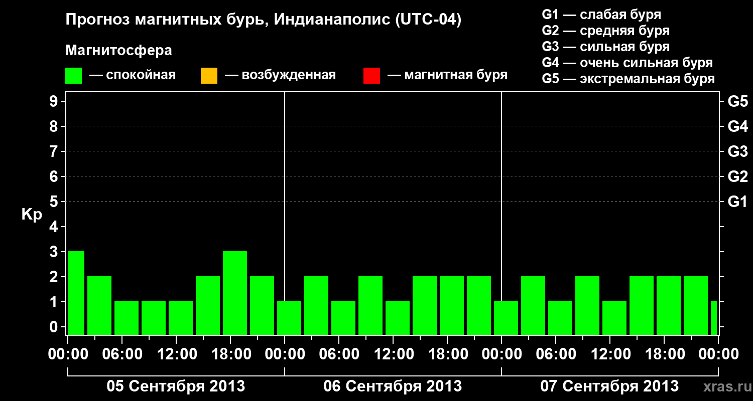 Прогноз магнитных бурь в Индианаполисе — 5 сентября 2013 года