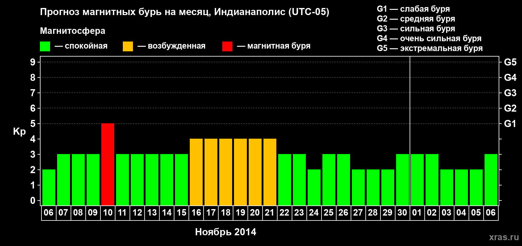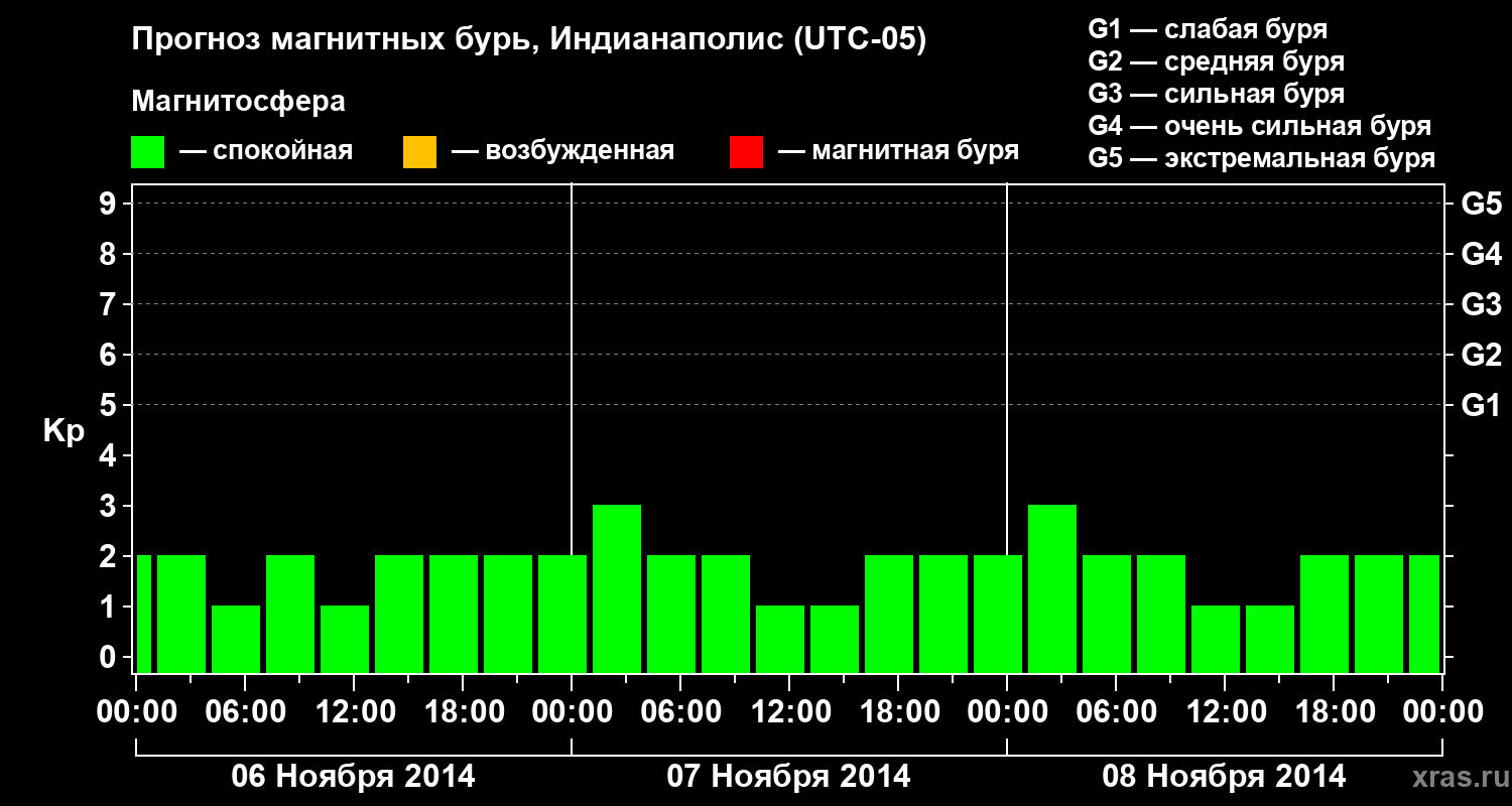 Прогноз магнитных бурь в Индианаполисе — 6 ноября 2014 года