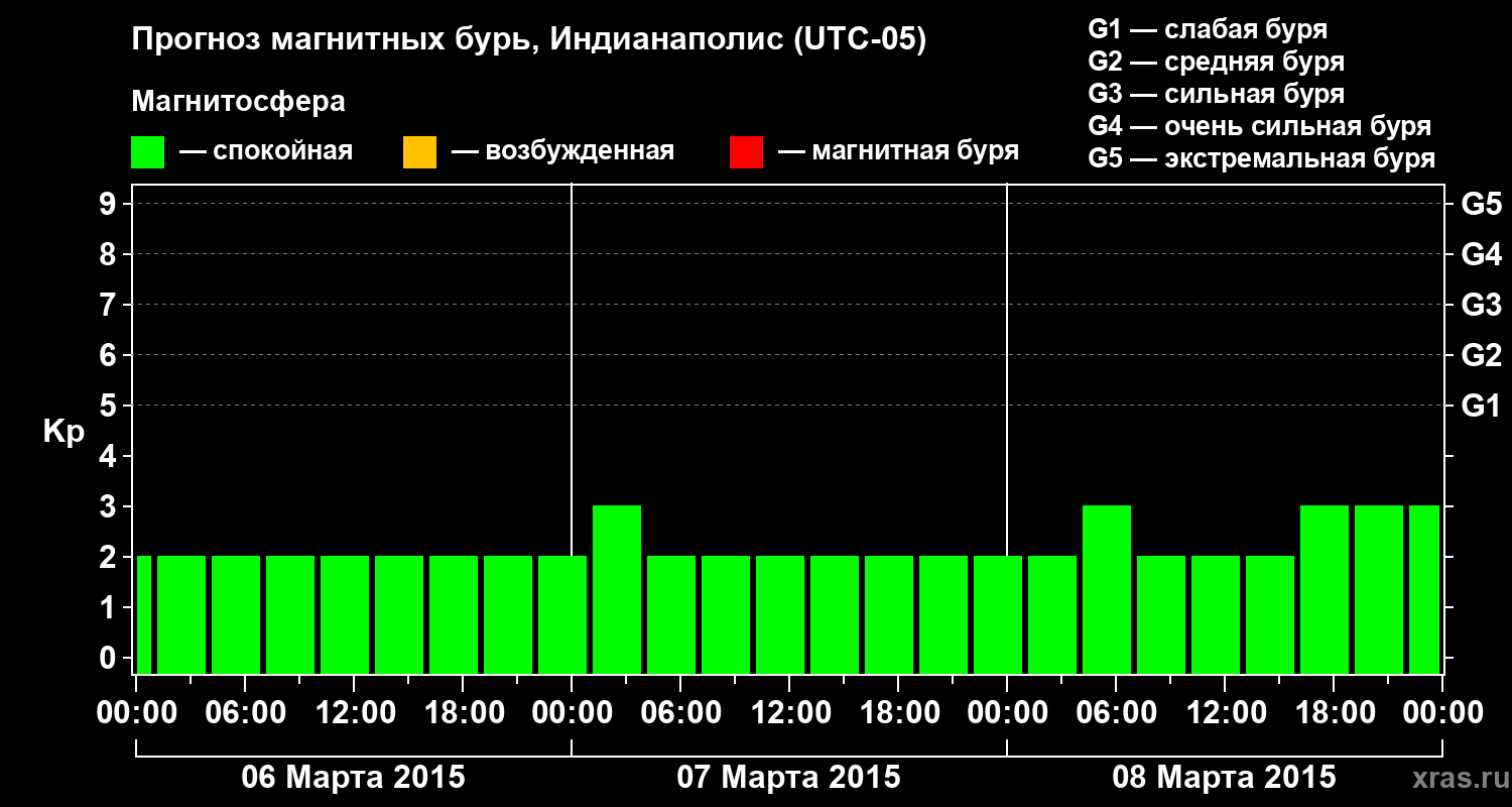 Прогноз магнитных бурь в Индианаполисе — 6 марта 2015 года